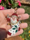 Key Chain Rhinestone Christmas Santa Claus St. Nick Stocking Charm Gift