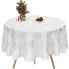 Christmas Table Cloth Round 60 Inch, Waterproof White Gold Snowflake Tableclo...