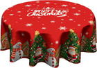 Round Christmas Tablecloth round 70 Inch, Christmas Tree Snowman Table Cloths wi