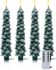 Christmas Tree Flameless Candles with Remote,4 Pcs Green Real Wax LED Flickering