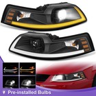 Black Headlights Switchback Sequential w/LED Tube For 1999-2004 Ford Mustang