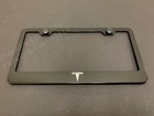 1xTESLA BLACK Stainless Metal License Plate Frame + Screw Caps LOGO