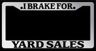 Chrome License Plate Frame I Brake For Yard Sales Auto Accessory 922