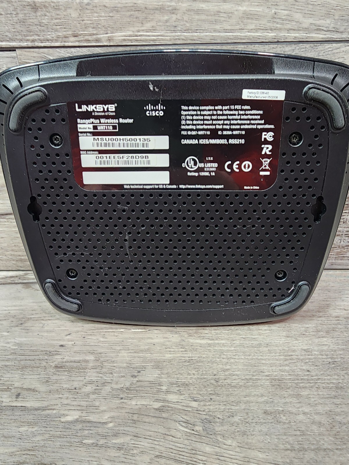 Linksys WRT110 Rangeplus Wireless Router Part (Scratched/Tape Marks) (NO Adapt