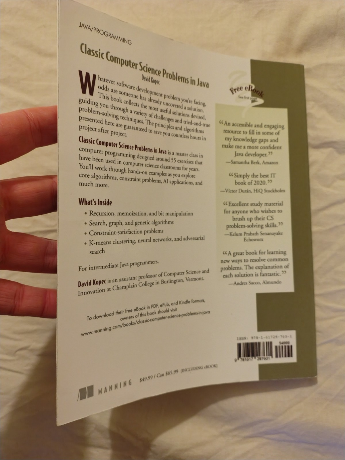 "Classic Computer Science Problems in Java" by David Kopec is a comprehensive textbook published by Manning Publications Co. LLC in 2021. Covering a range of classic computer science problems, this trade paperback book is written in English and spans 225 pages. With a focus on programming languages, specifically Java, this book is ideal for adult learners and university students looking to deepen their understanding of computer science concepts. The author's expertise and engaging writing make this a valuable resource for anyone interested in the computer science field.