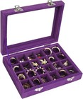 Velvet Jewelry Box 24 Grid Ring Display Organizer 6 Colors Glass Cover Tray