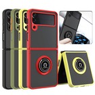 For Samsung Galaxy Z Flip 4 3 5G Ring Case Magnetic Metal Kickstand Clear Back