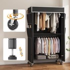 Portable Closet Wardrobe, Double Rods Garment Rack with wheels,Black/Gray Closet