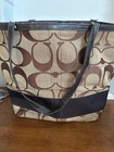 Coach Brown Logo Canvas Tote Bag Leather Handles Zip Closure Gold Hardware