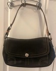Coach Op Art Signature Satchel Shoulder Bag Black Canvas Leather Trim