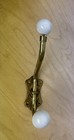 Vintage Brass & Porcelain Ball Wall Hanger Hook Coat Towel Rack