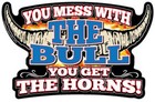 You Mess With the Bull You Get the Horns Postcard Sized Vinyl Sticker 6" x 3.75"