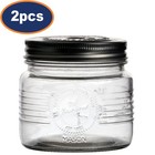 Storage Jar Glass 500ml Airtight Lid Preserving Tea Coffee Sugar Canister 2Pcs