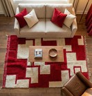 New Modern Red Ivory Berber Wool Rug Geometric Area Rug Handmade Carpet.
