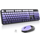 Colorful Wireless Keyboard and Mouse Combo, 2.4GHz Wireless Retro Cute Round ...