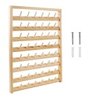 48-Spool Sewing Thread Rack, Wall-Mounted Thread Holder with Hanging Hooks, Wood