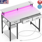 Computer Desk W/ Power Outlets LED Light Storage Drawers Monitor Stand New