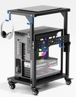 Height Adjustable Computer Tower Stand with Charging Station, 2 Tier Mobile F...
