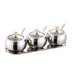 3-Piece Glass Condiment Set with Spoons & Lids - Ideal Kitchen & Food Storage