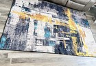 Modern Abstract Rectangle Area Rug Blue Gray Yellow White Black