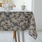 Pastoral Rectangle Tablecloth -52 x 70 Inch- Beige Linen Table Cloth (Dark Blue)