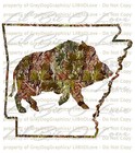 Camo Hog Boar over the ARKANSAS State Outline Hunter Vinyl Decal Sticker Hunting