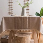 Farmhouse Tablecloth Heavy Weight Stitching Tassel Cotton Linen Dust-Proof Table