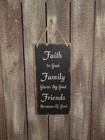 Faith Family Friends Wood Sign 6 x 12 Rustic Primitive Country Distressed