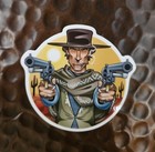CLINT EASTWOOD COWBOY w/HAT and GUNS Man w/NO NAME Opaque Sticker Vinyl 3 inch