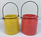 2 Vtg. Genuine & Crafted Original Yellow Burnt Orange Glass Farmhouse Jar 2