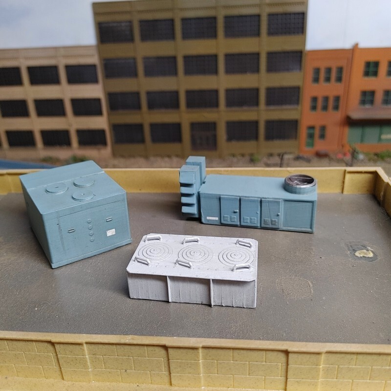 Custom Built 1/87 HO Scale Set of 3 Rooftop AC/Air Handling Units.