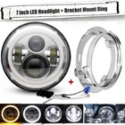 7" inch LED Halo Headlight & Bracket Mounting Ring For Harley Street Glide FLHX