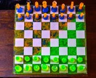 Handmade Resin Chess Set Neon Green Blue Orange Unique Artisan Chess Board Game