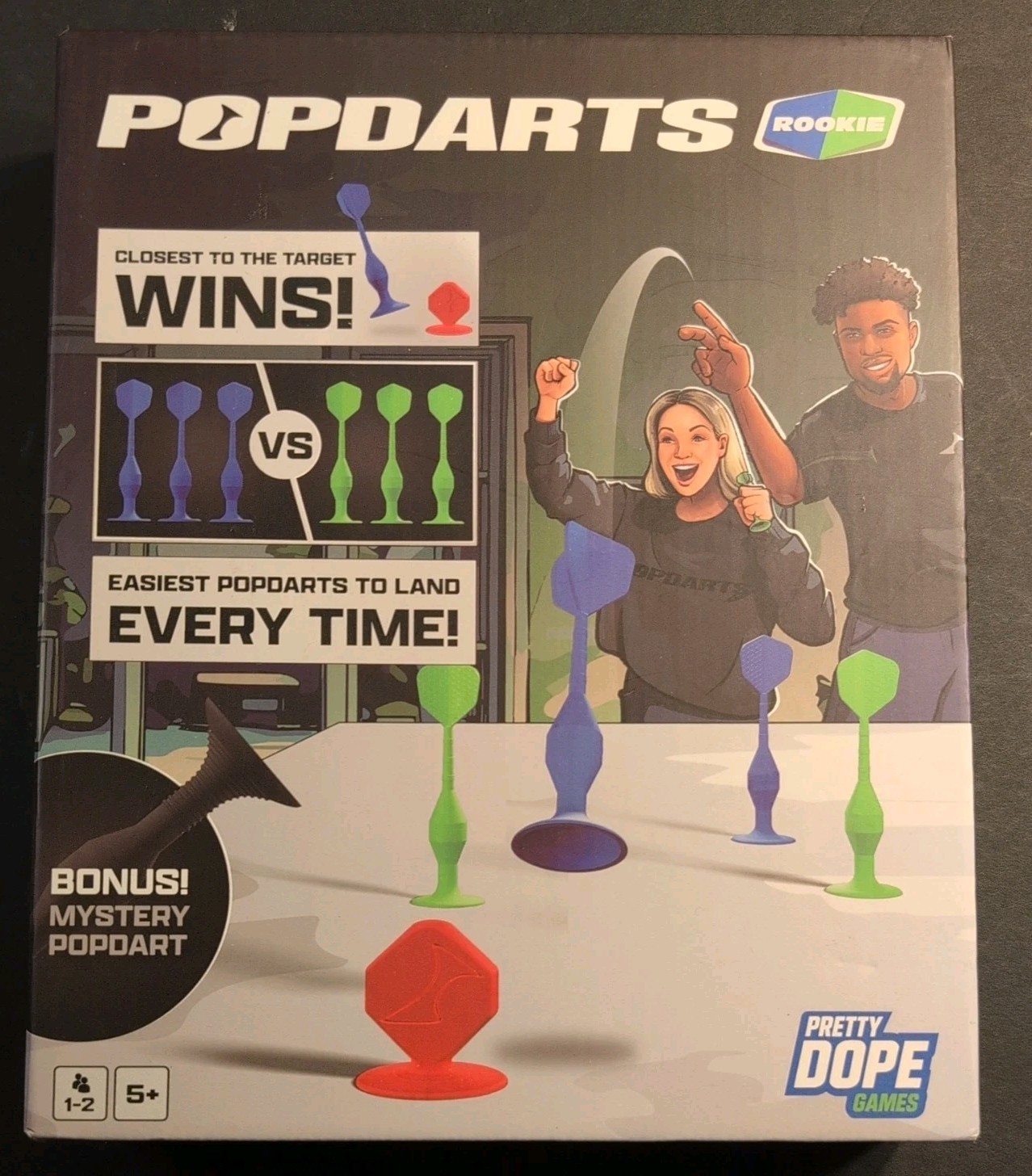 Popdarts Rookie Pack game by Pretty Dope Games. It is a beginner-friendly suction cup dart game designed for casual play and family game nights, suitable for ages 5 and up.