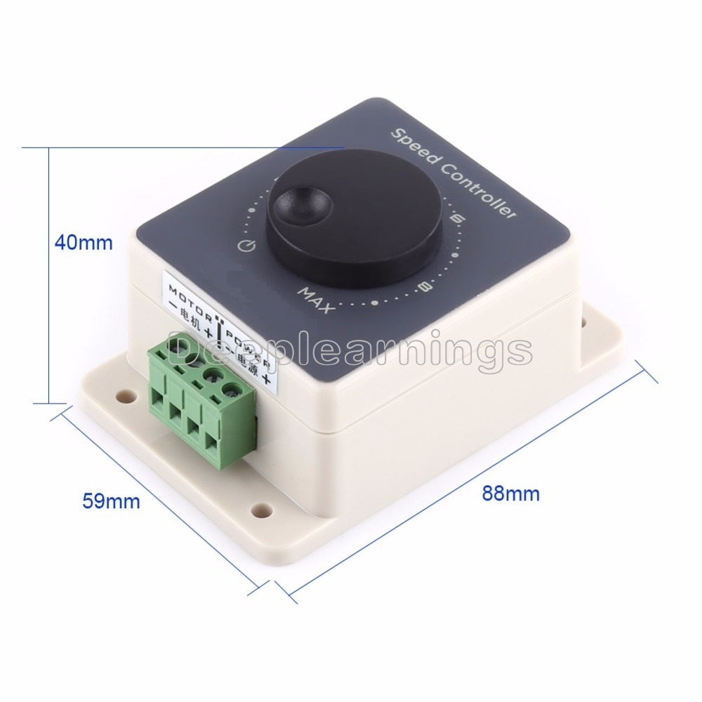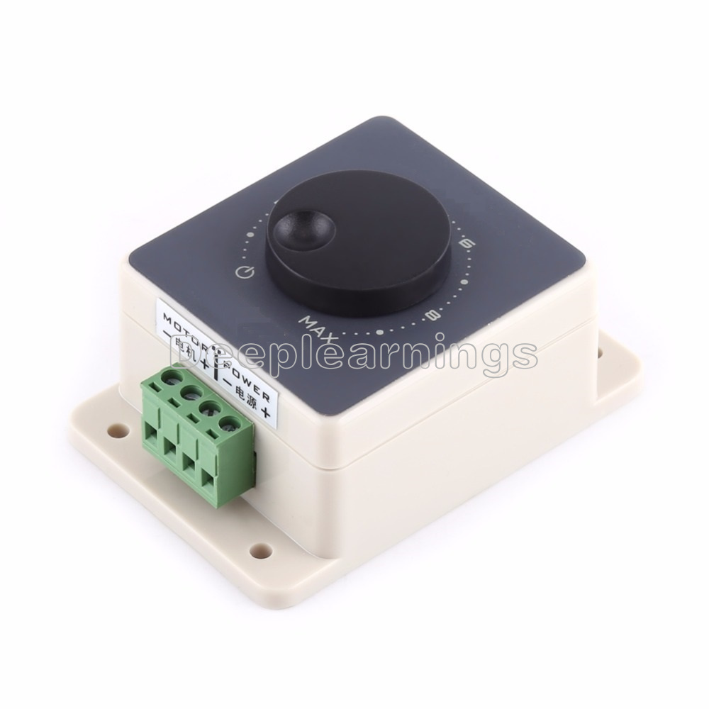 This is a simple and easy-to-use DC motor speed controller of small size, elegant appearance and stable performance. It is made with high quality circuit board which ensures a longer service life. The input voltage can be DC 10V to 60V and output voltage is 0-100% of the input voltage. This speed controller is quite convenient to set.