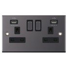 2 x Screwless Black Nickel Black Chrome 13amp Switched Socket with USB Charger