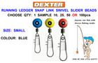25pcs RUNNING LEDGER LEAD FEEDER LINK SWIVELS WITH BEADS SNAP pellet waggler