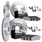 DFC Brake Rotor - Dimpled & Slotted - Silver w/5000 Brake Pads & HW Kit