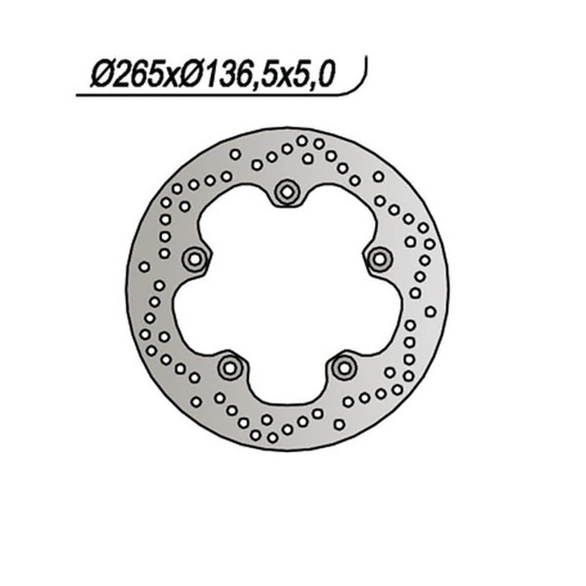 Il disco freno anteriore NG, disponibile per il lato destro e sinistro, è progettato per garantire prestazioni ottimali e una frenata sicura. Con un diametro esterno di 265 mm e un diametro interno di 136,5 mm, questo disco offre una superficie di contatto ideale per un'efficace dissipazione del calore e una risposta immediata in fase di frenata.