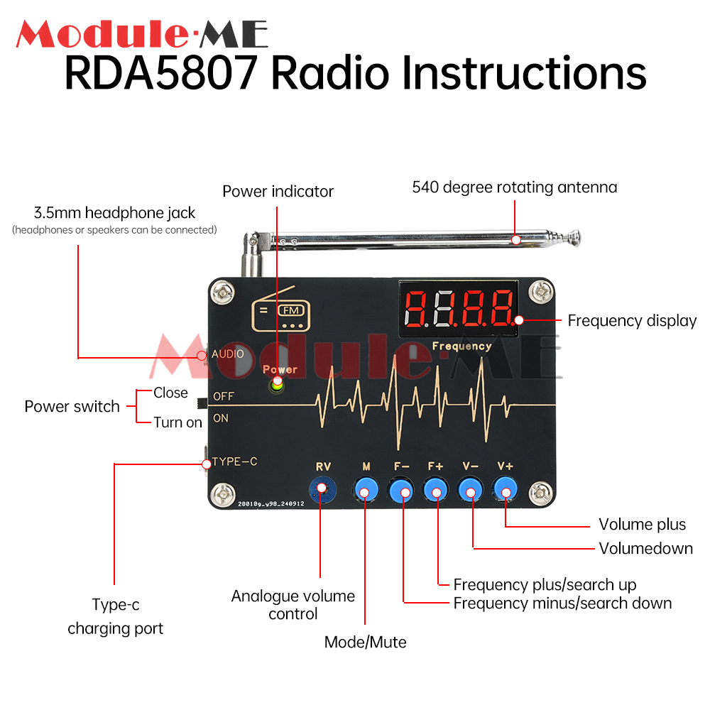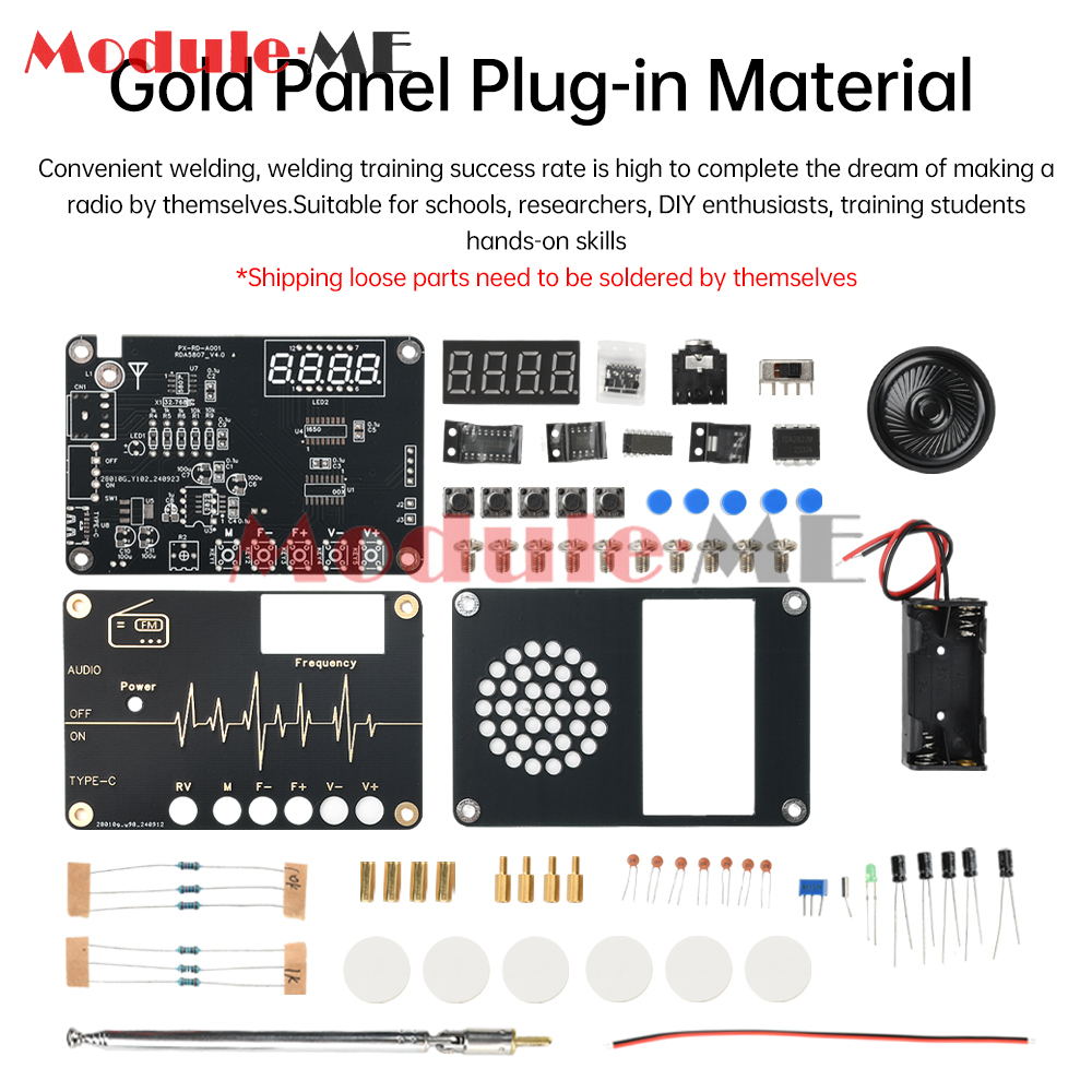 Features 1. Using ARM 32-bit master control chip, applying RDA5807M radio chip, with 87-108MHZ global FM receiving band compatible effect 2. With noise elimination, software mute, bass enhancement, high sensitivity, low noise, strong anti-interference ability and so on. 3. Amplifier part of the TDA2822 power amplifier IC, with a simple circuit, good sound quality, wide voltage range and so on. 4. Tested to receive more stations, FM radio kit, three search modes: fully automatic search, semi-automatic search, manual search 5.DIY electronic production kit, easy to weld, suitable for schools, researchers, DIY enthusiasts, training students hands-on skills, etc.