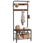 Metal Coat Rack Free Standing Hall Tree with 2-Tier with Bench and Shoe Storage