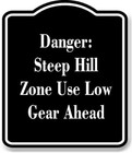 Danger Steep Hill Zone Use Low Gear Ahead BLACK Aluminum Composite Sign