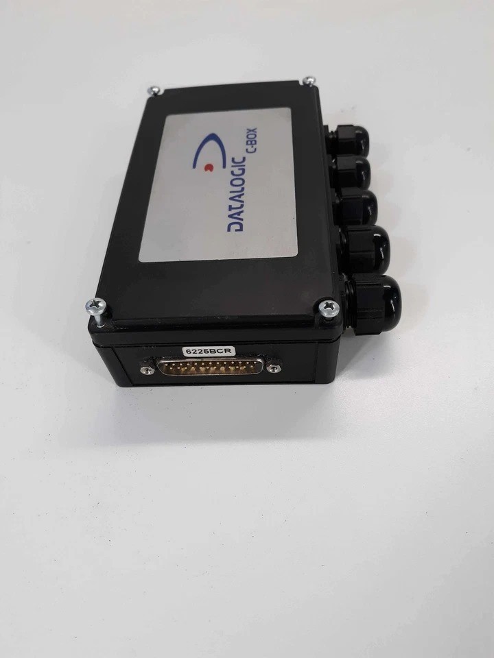 Datalogic C-BOX 100 industrial connection/interface box used with Datalogic barcode scanners and automation systems. The unit is used, tested, and fully functional. Ideal for industrial sensor and barcode reader installations.