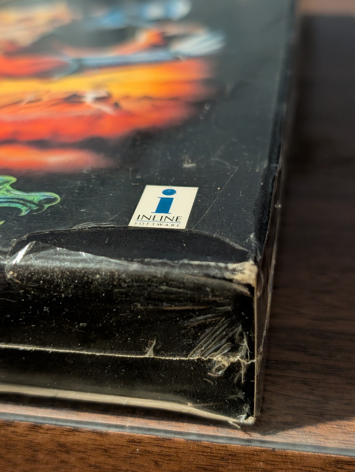 - Specific Wear: There is some age-related compression/bowing on the side panels and a small puncture/tear in the shrinkwrap on the bottom corner. Some light corner dings and shelf wear are present, consistent with a 30+ year old big-box title.