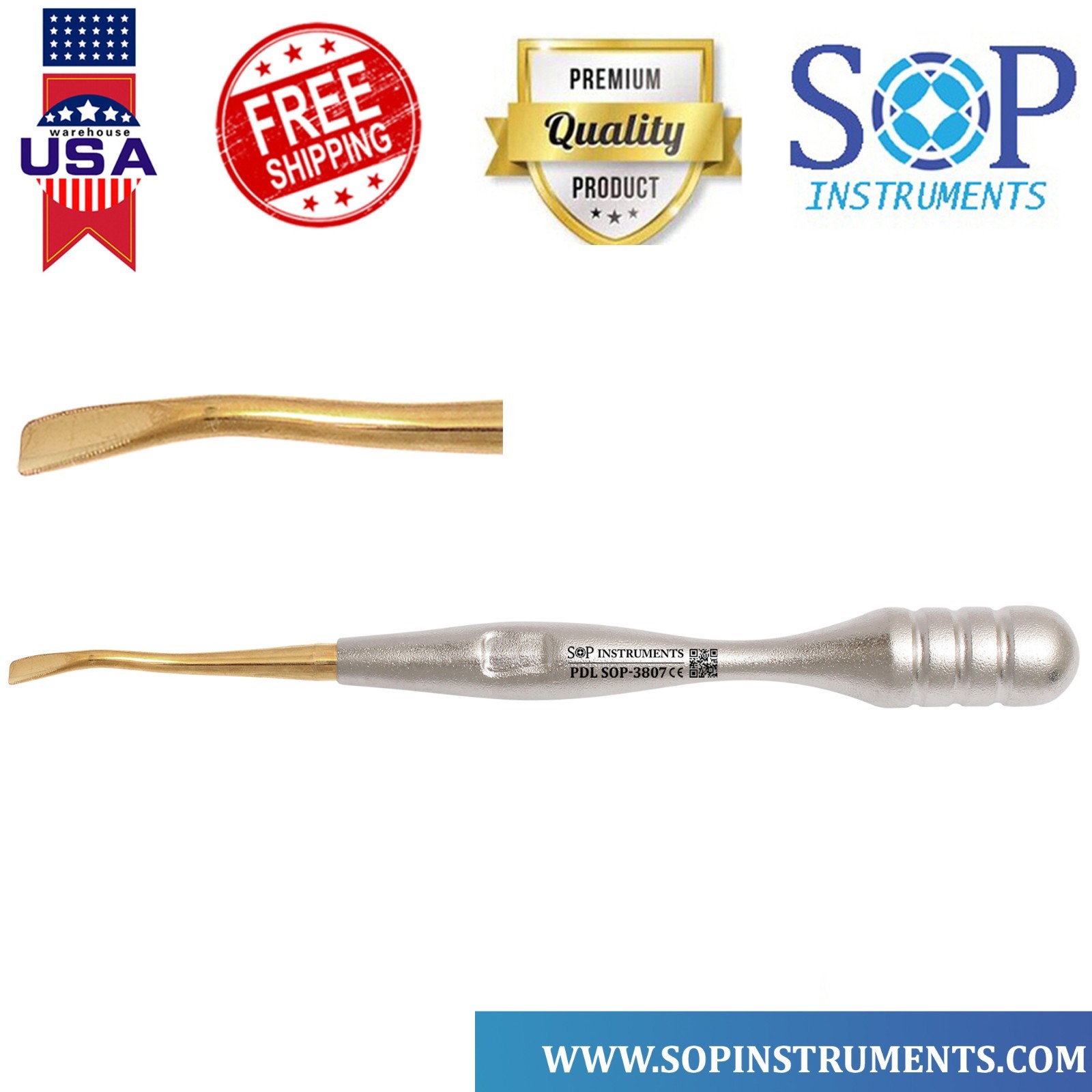 Manufactured from high-grade surgical stainless steel and finished with a titanium gold coating, this elevator offers superior strength, corrosion resistance, and long-lasting sharpness. Ideal for general dentists, oral surgeons, and implant specialists seeking precision and durability in extraction procedures.