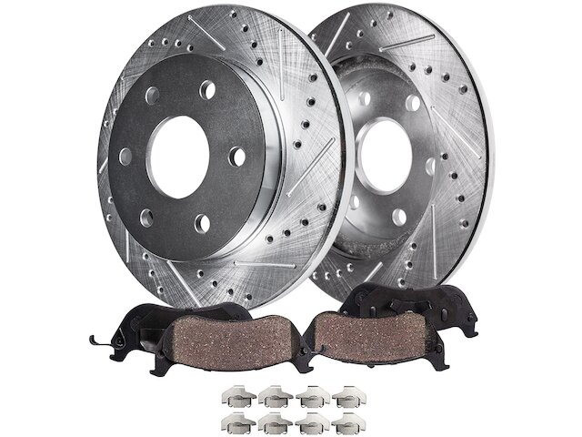 Features:- Kit Includes: (2) Rear Drilled Slotted Brake Rotor + (2) Rear Ceramic Brake Pad