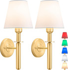 Gold Battery Operated Wall Sconce Set of 2 with Remote Control & Dimmable Light