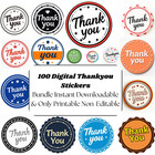100 Bundle of Digital PDF Non Editable Thankyou stickers Thankyou Downloadable