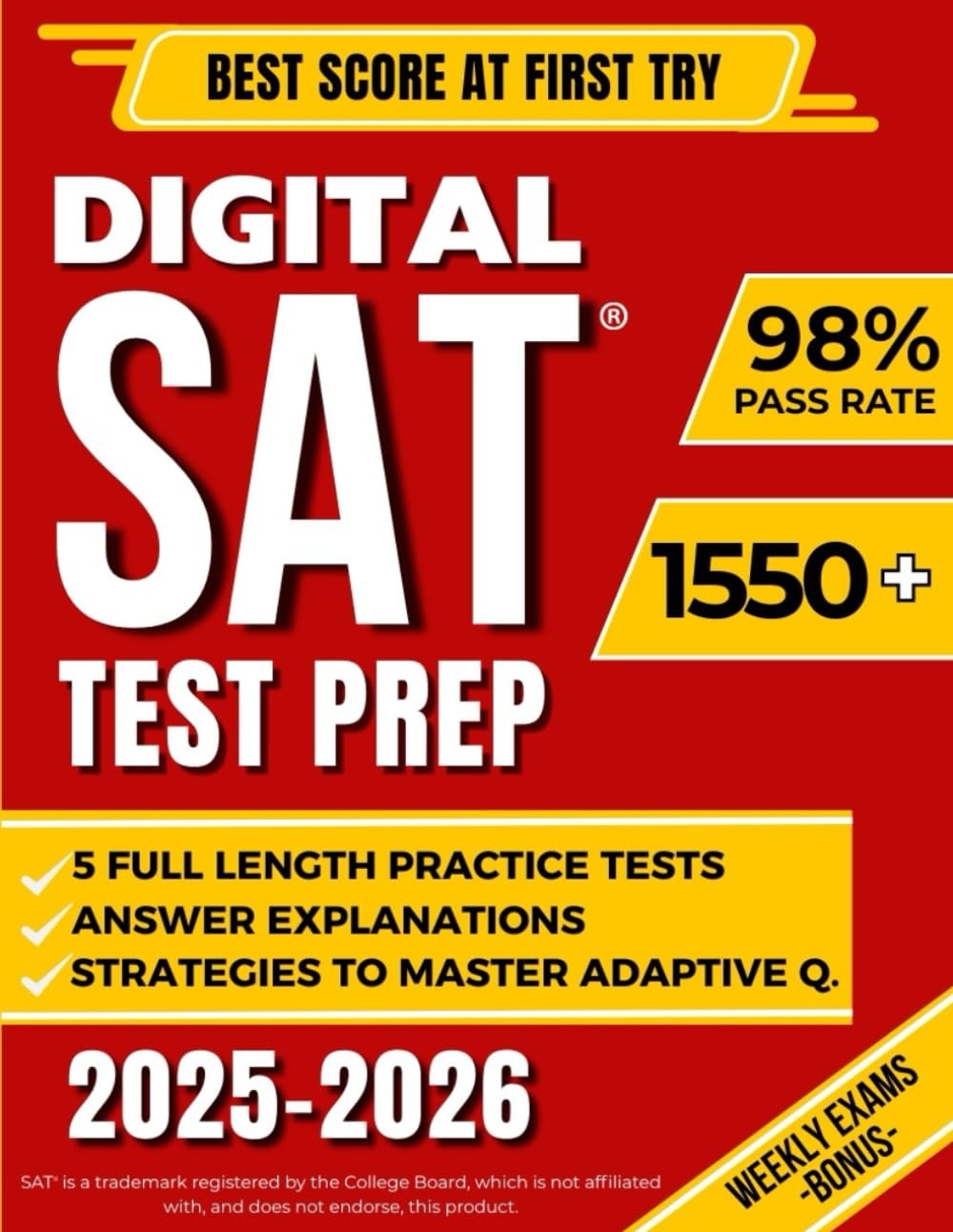 Title: Digital SAT Test Prep: The Most Complete Study Guide to Ace the SAT Exam and Achieve Your Best Score by Mastering Adaptive Questions | Includes 5 Full-Length Practice Tests and EXTRA Weekly Exams