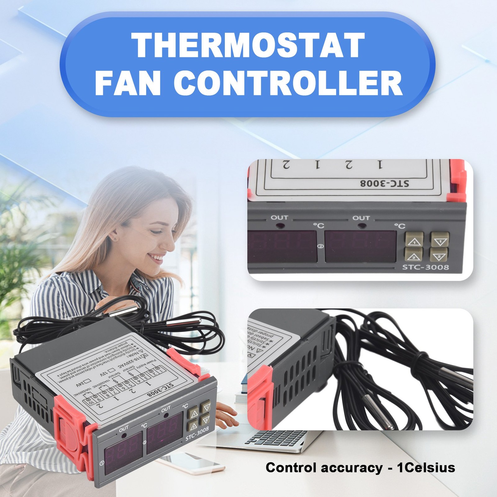 Digital Thermostat Temperature Controller -3008 Sensor Hygrometer8391